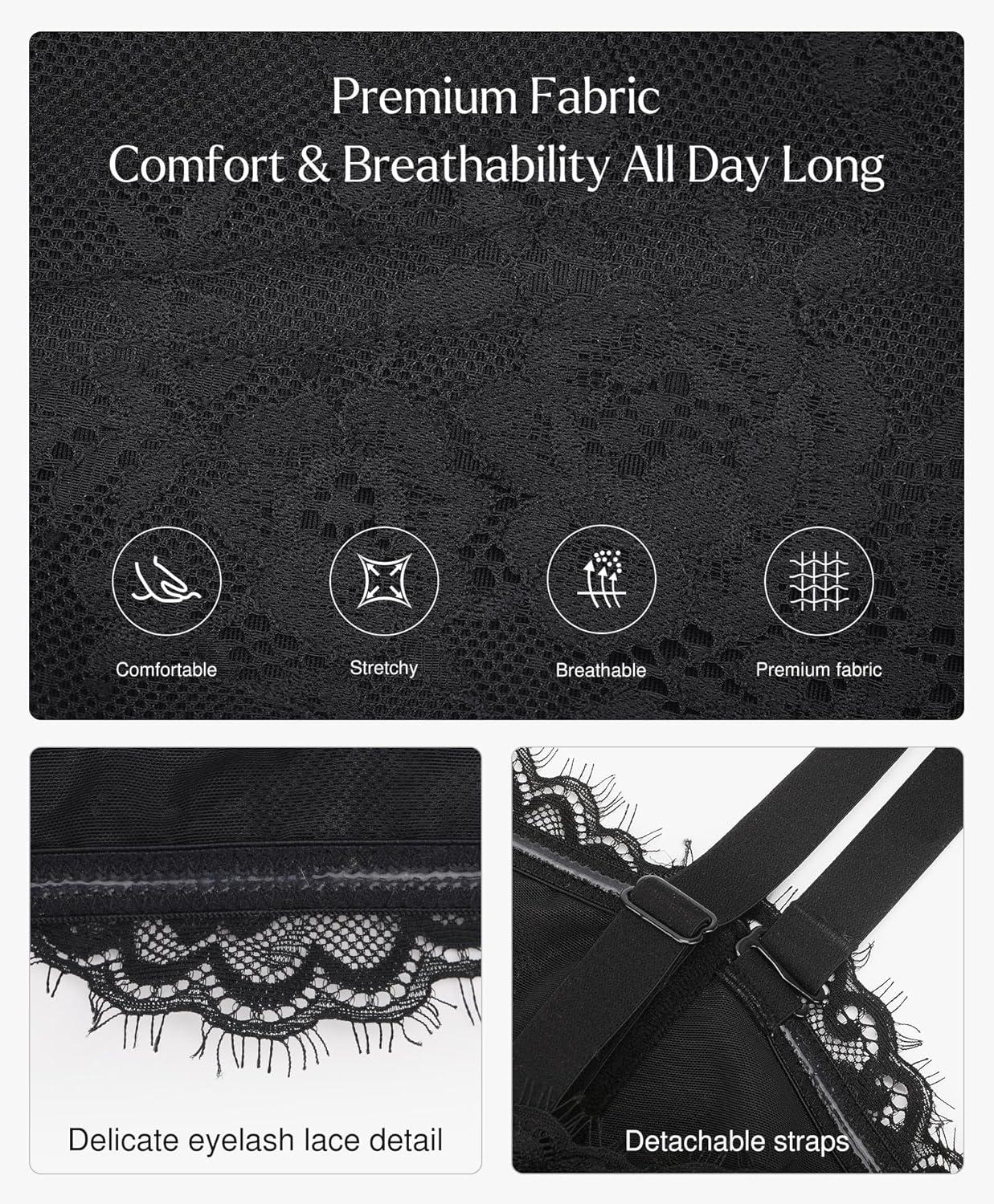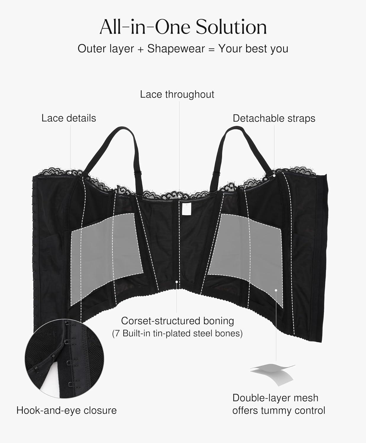 Popilush Corset Tops for Women - Shapewear Lace Top Sculpting Detachable Strap Bustier with Buckle Summer Splash(Black)