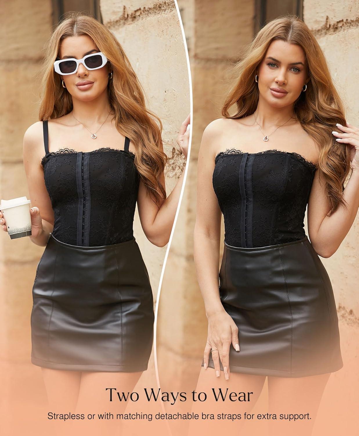 imagePopilush Corset Tops for Women  Shapewear Lace Top Sculpting Detachable Strap Bustier with Buckle Summer SplashBlack