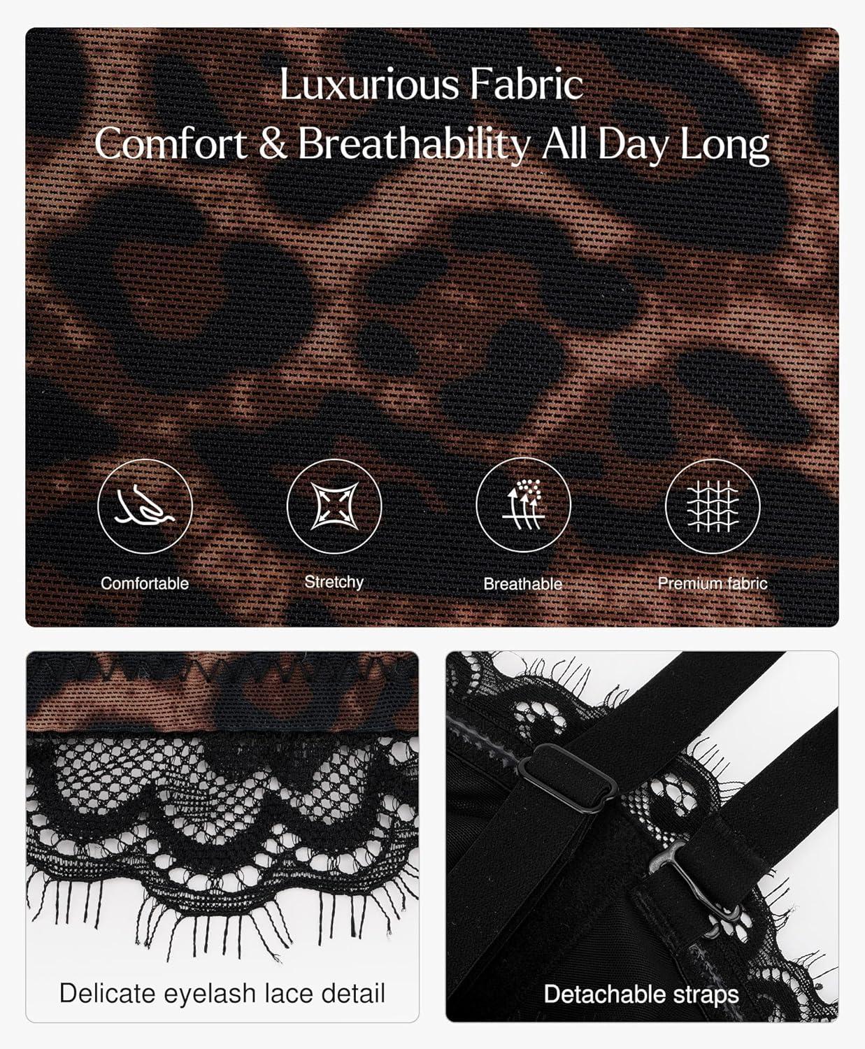 Popilush Corset Tops for Women – Shapewear Lace Top Sculpting Detachable Strap Bustier with Buckle Summer Splash(Leopard)