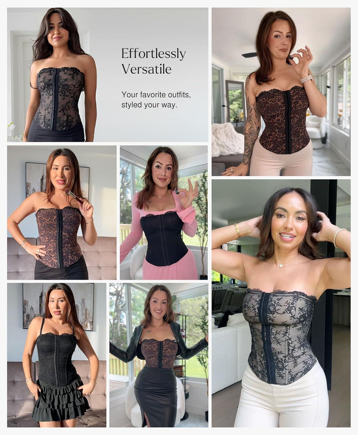 imagePopilush Corset Tops for Women  Shapewear Lace Top Sculpting Detachable Strap Bustier with Buckle Summer SplashSkin