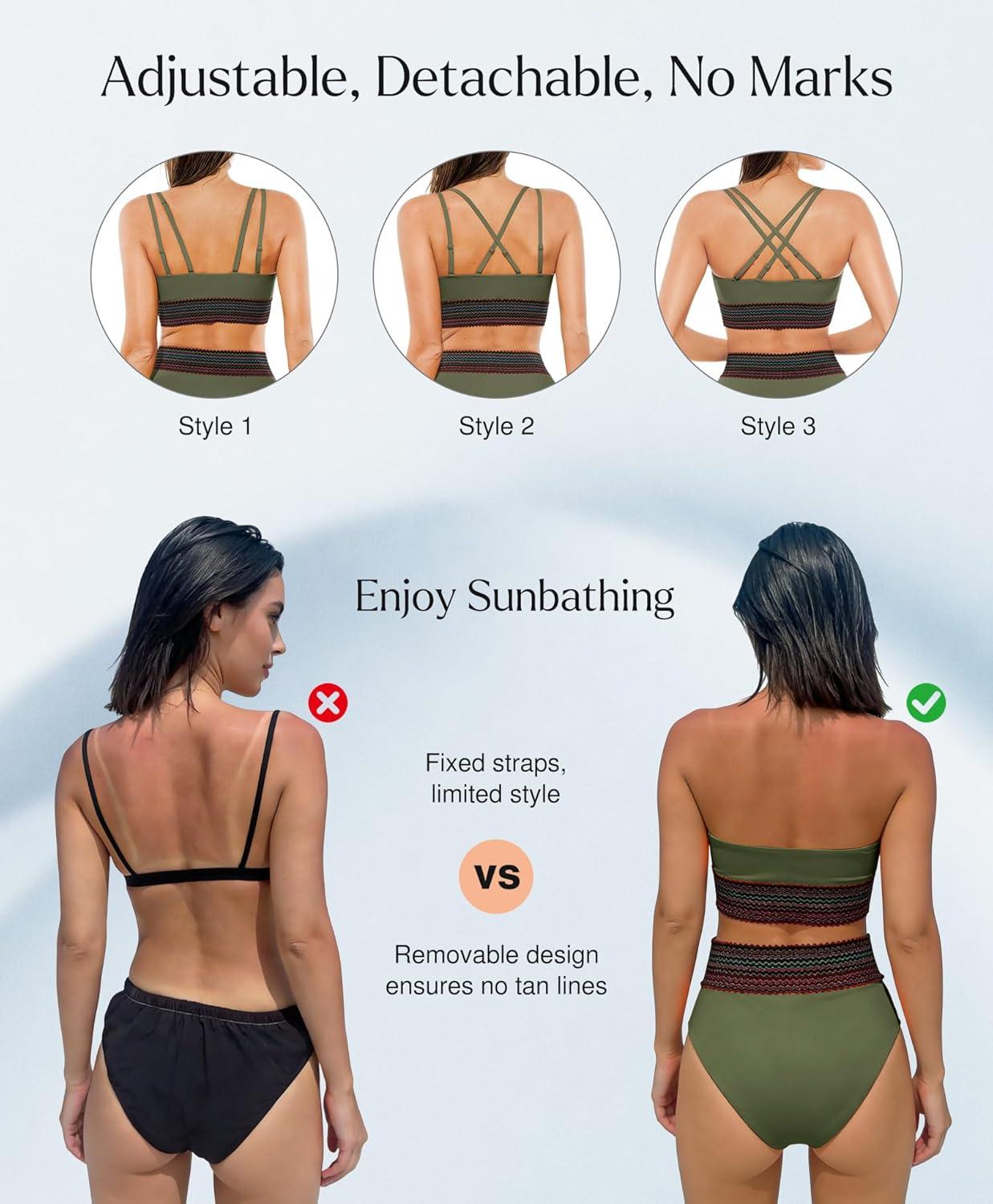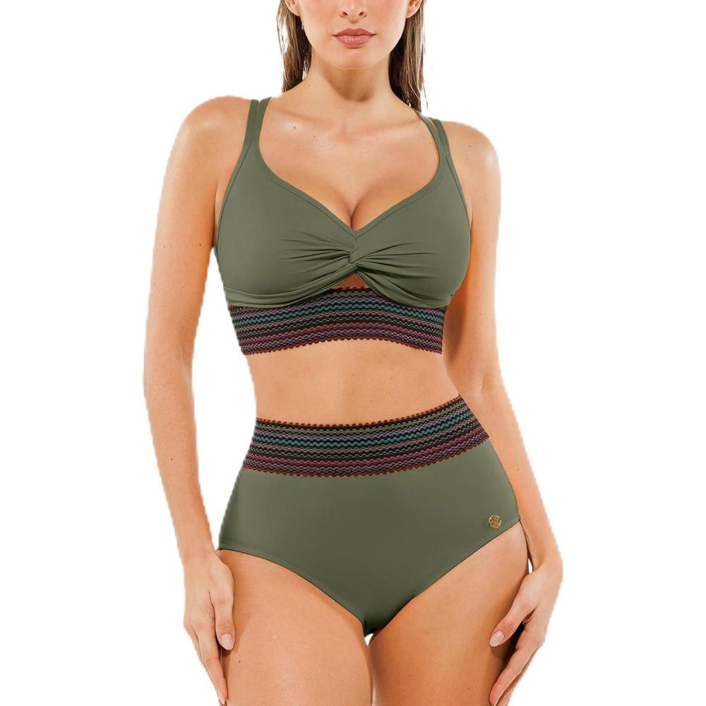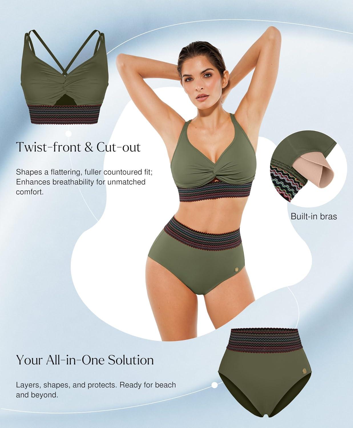 image:imagePopilush High Waisted Bikini Set for Women Tummy Control Shapewear Swimsuit with Boho Trim 4 Way Wear Beach and PoolGreen