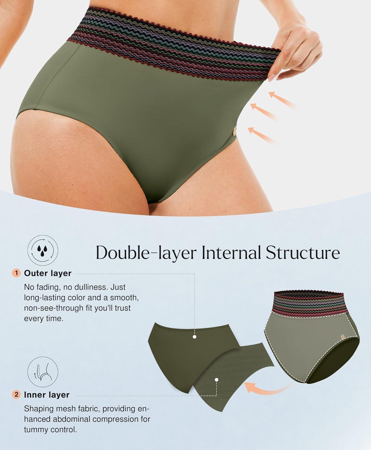Popilush High Waisted Bikini Set for Women Tummy Control Shapewear Swimsuit with Boho Trim 4 Way Wear Beach and Pool(Green)