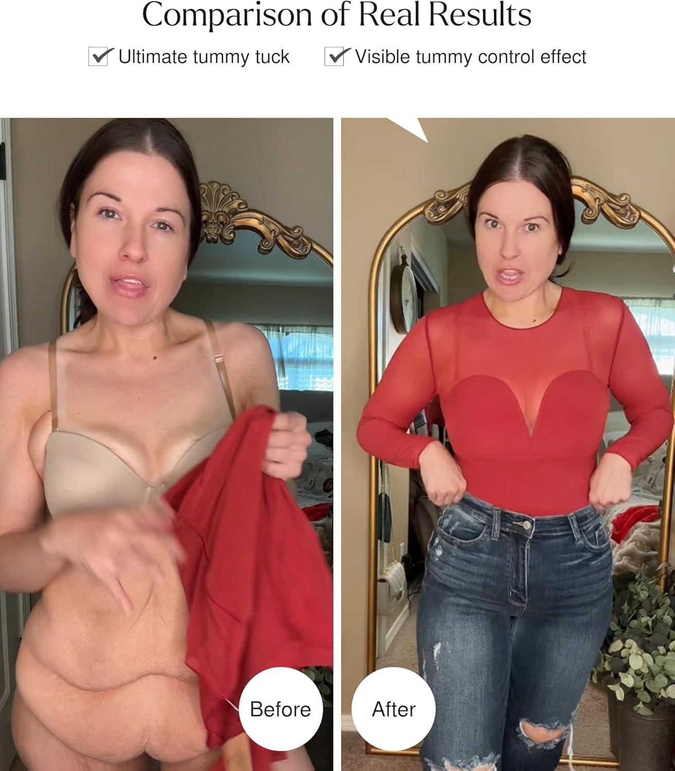 imagePopilush Long Sleeve Body Suits Womens Tummy Control Mesh Shapewear Corset Bodysuit Sheer Going Out Tops Fall OutfitsWhite