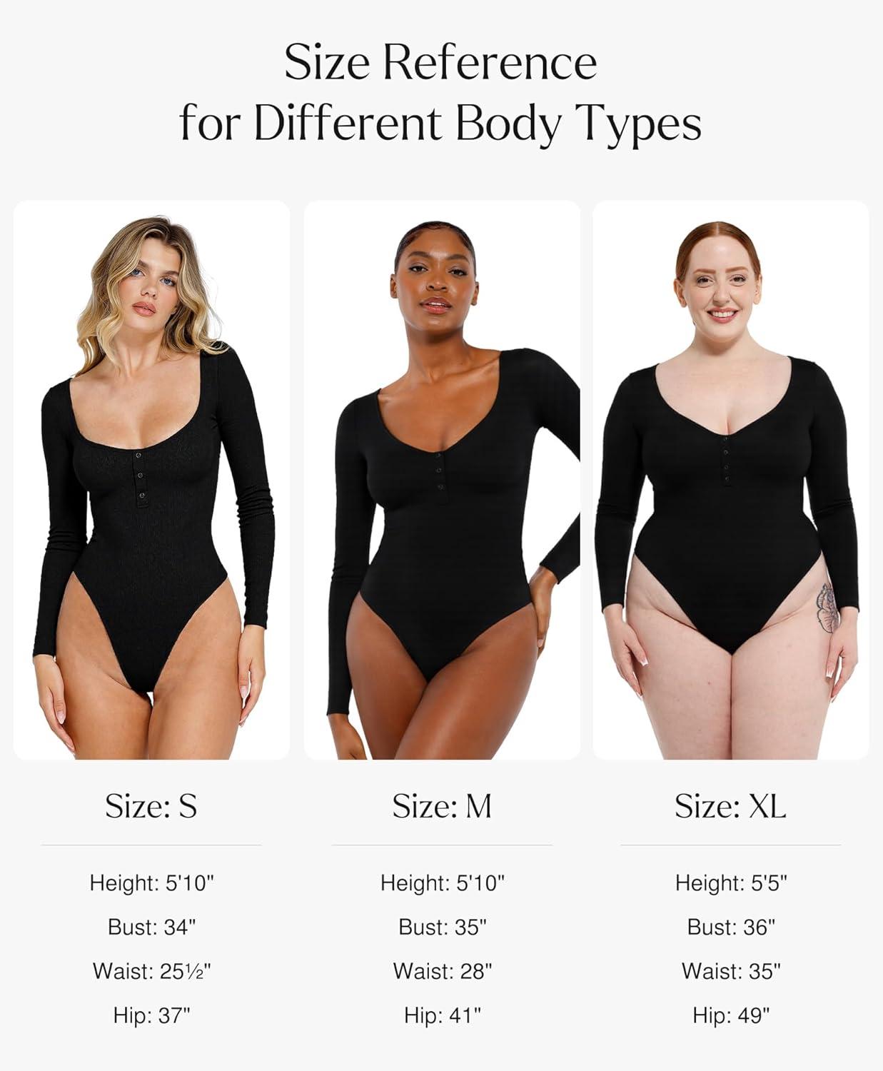 Popilush Long Sleeve Shapewear Bodysuit Tummy Control Henley Button Up Modal Scoop Neck Body Suit Tank Tops(Black)