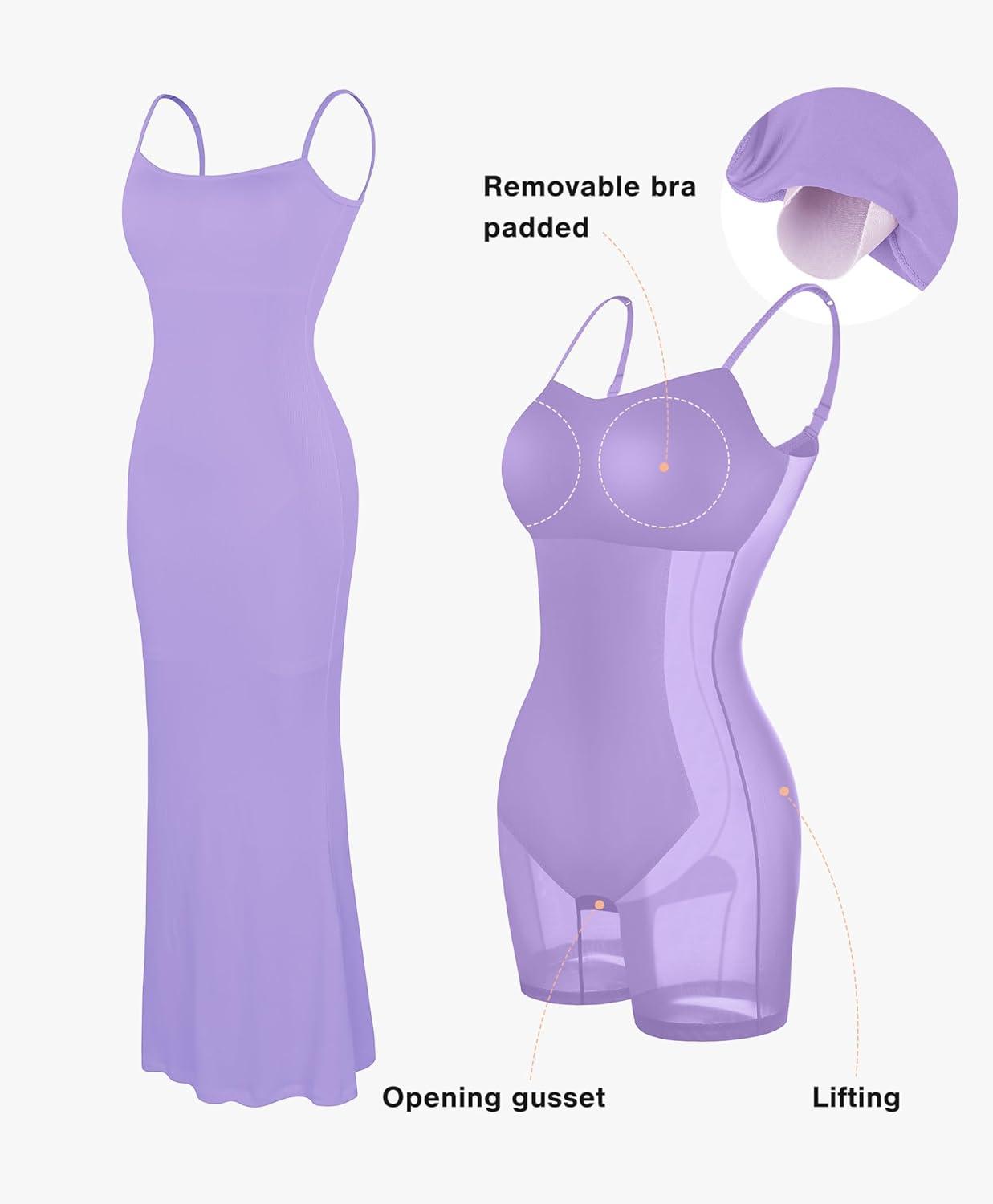 Popilush Maxi Dress Bodycon Dresses for Women Cocktail Spaghetti Strap Shapewear Dress Party Date Night Summer Long(Purple)