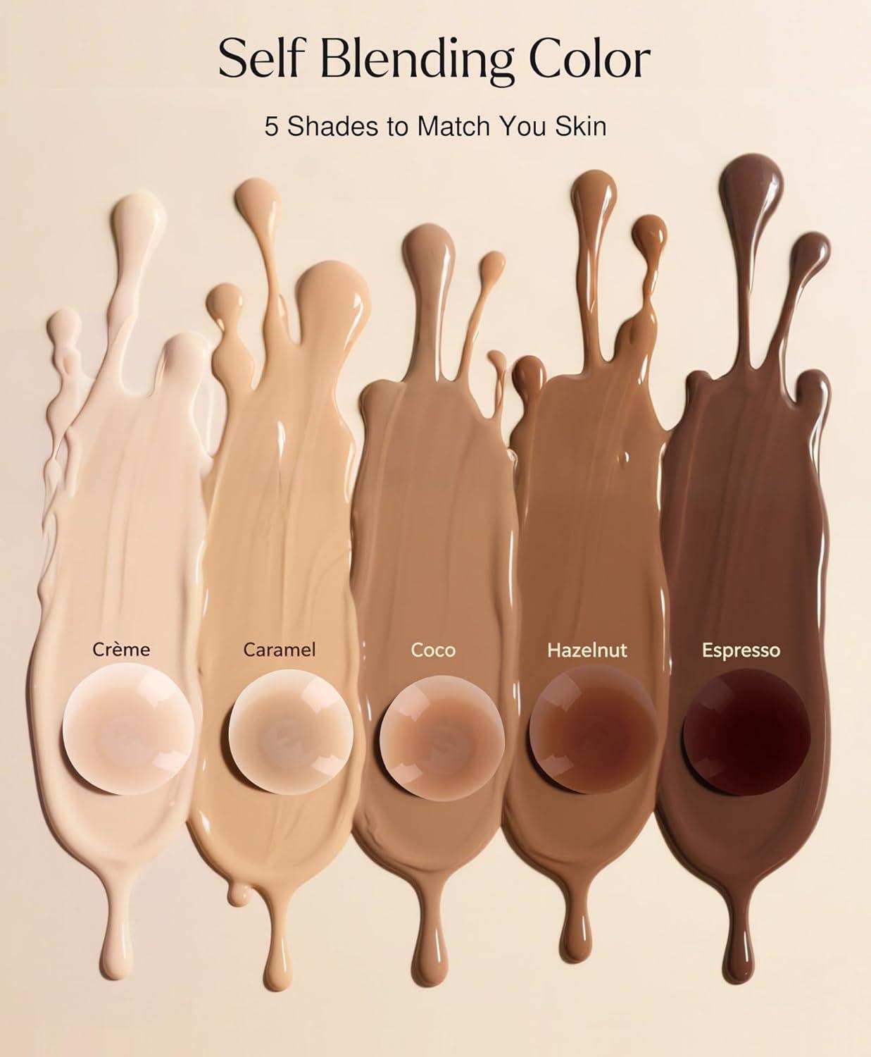 Popilush Nipple Covers for Women - 2 Pairs Sticky Bra - Reusable Silicone Nipple Pasties Waterproof with Travel Case Hazelnut Large
