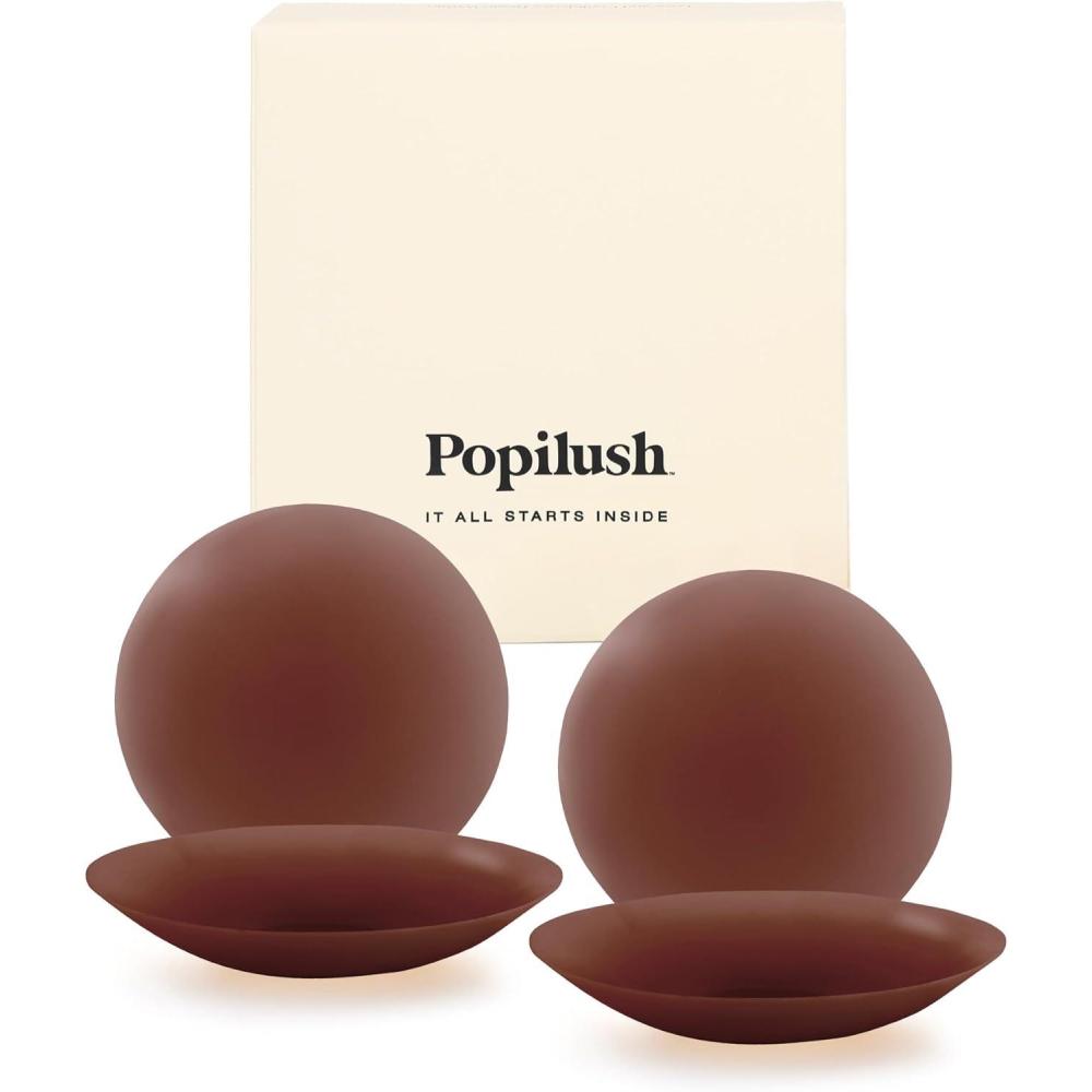 imagePopilush Nipple Covers for Women  2 Pairs Sticky Bra  Reusable Silicone Nipple Pasties Waterproof with Travel Case Hazelnut Large
