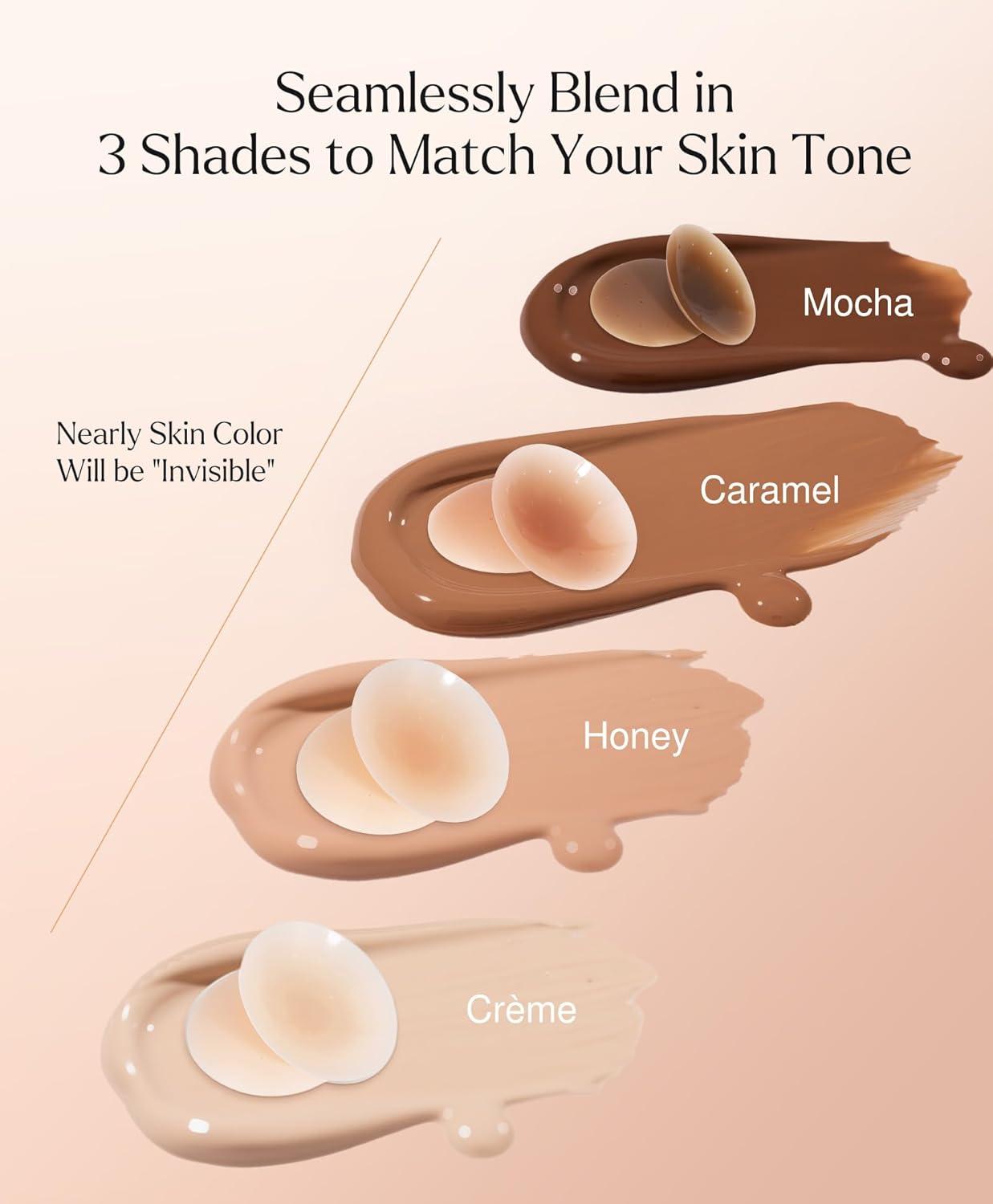 Popilush Nipple Covers for Women Sticky Bra Silicone Adhesive - Breathable Invisible Reusable for Wedding, Backless Dresses(Caramel)