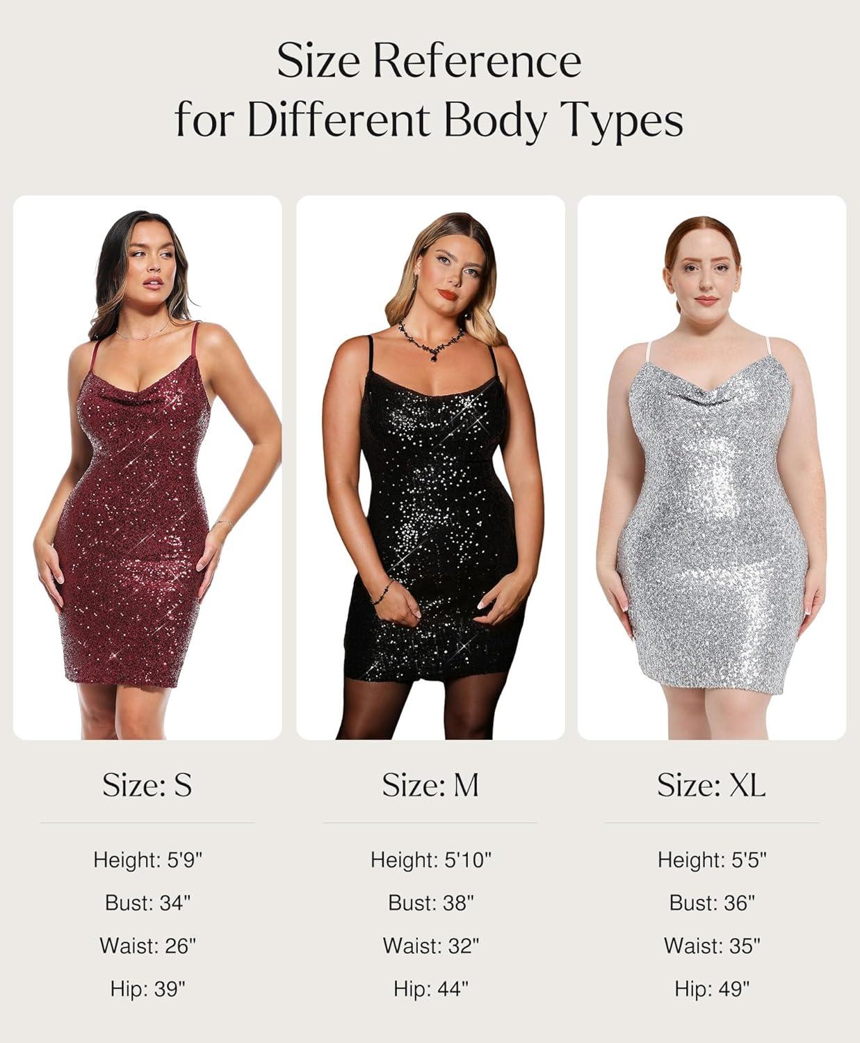 Popilush Sequin Mini Dress for Women – Slimming Shapewear with Cowl Neck Bodycon Sparkly Gown Cocktail Party and Club(Gray)