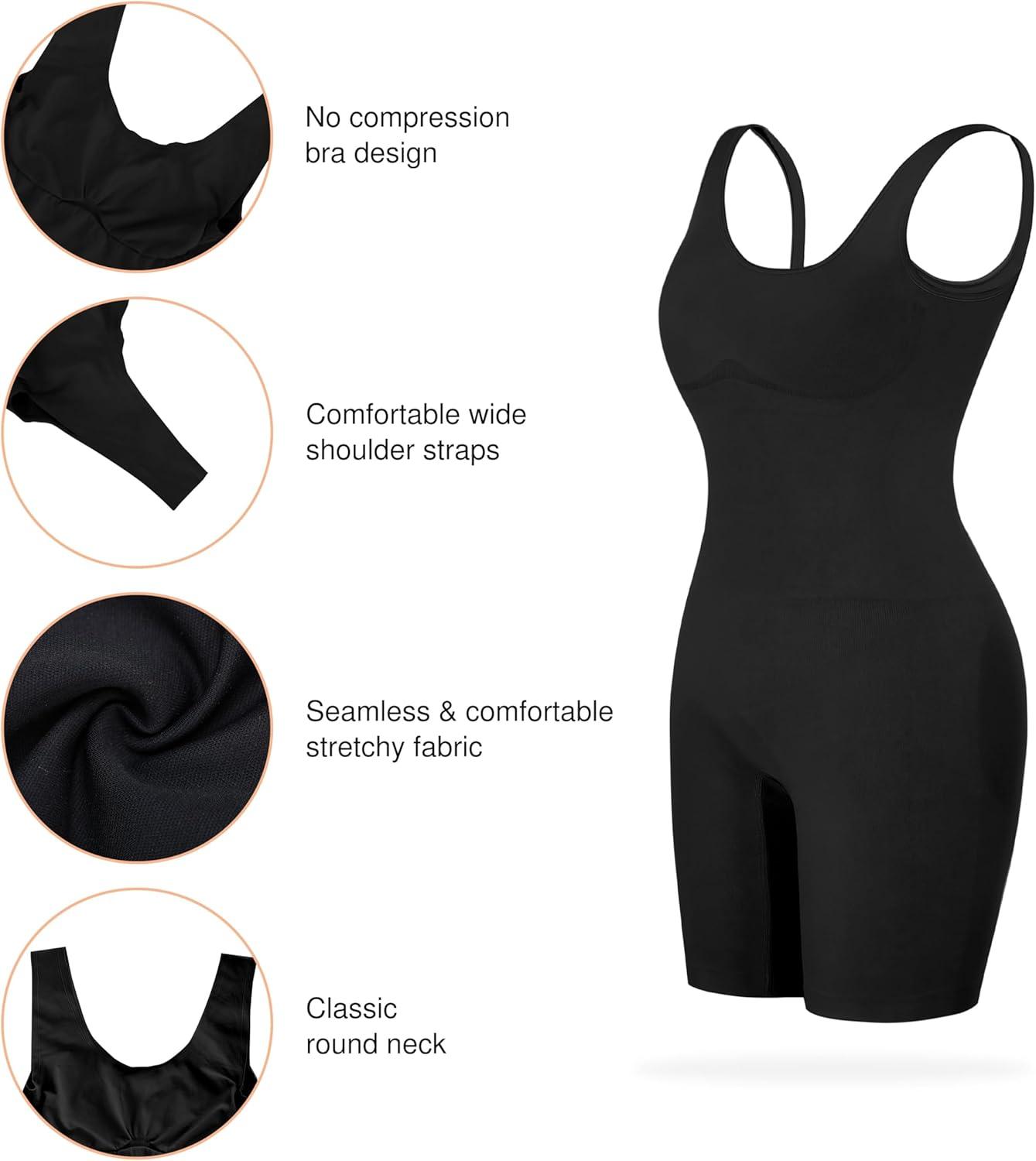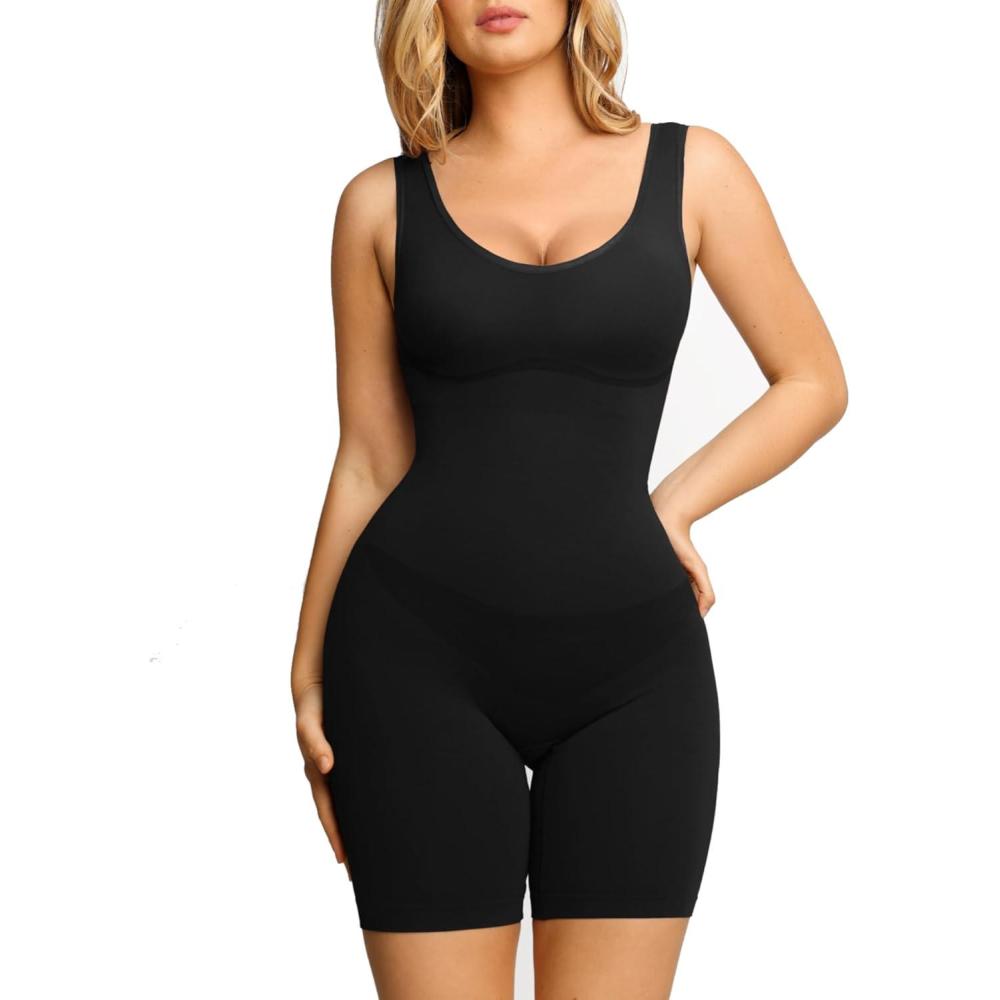 Popilush Shapewear Bodysuit for Women – Tummy Control Scoop Neck Body Shaper Sleeveless Sculpting Tank Tops(Black-mid Thigh)