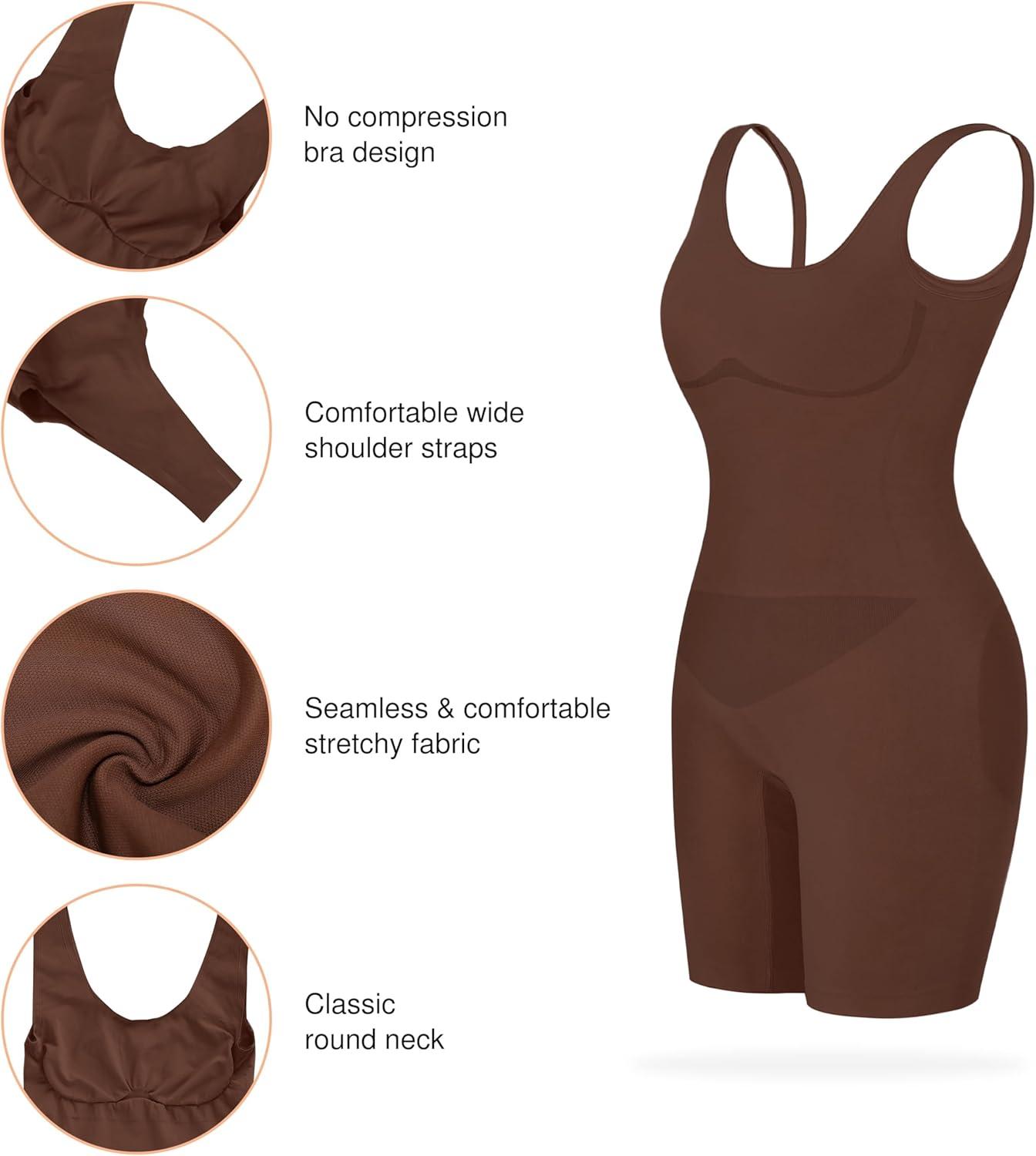Popilush Shapewear Bodysuit for Women – Tummy Control Scoop Neck Body Shaper Sleeveless Sculpting Tank Tops(Brown-mid Thigh)