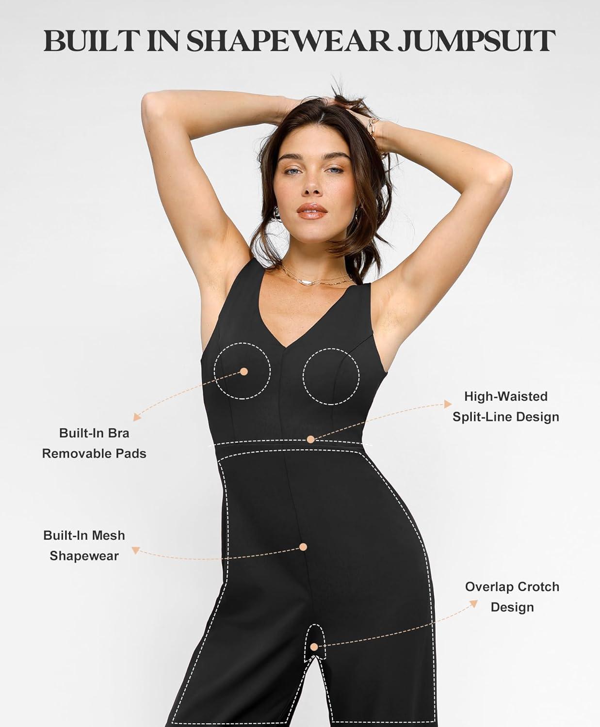 Popilush Shapewear Jumpsuit For Womens Romper Built-In Shapewear Jumpsuits For Women Tummy Control(Black-v Neck Jumpsuit)