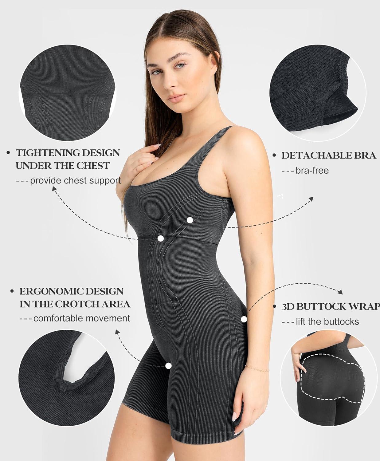 Popilush Shapewear Jumpsuits for Women Built In Shapewear Workout Shorts Rompers Tummy Control Bodysuit Yoga Outfits 2024(Brown)