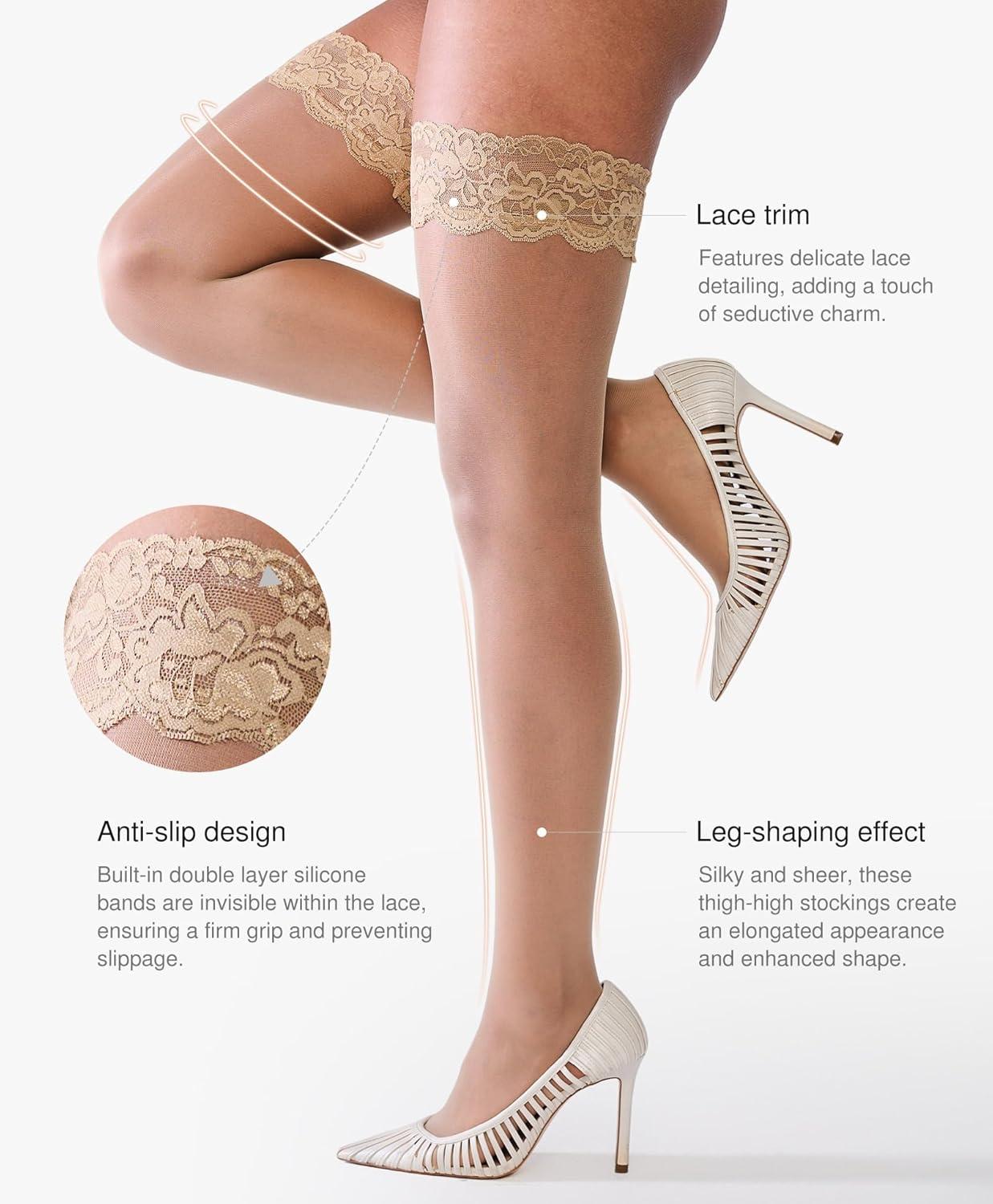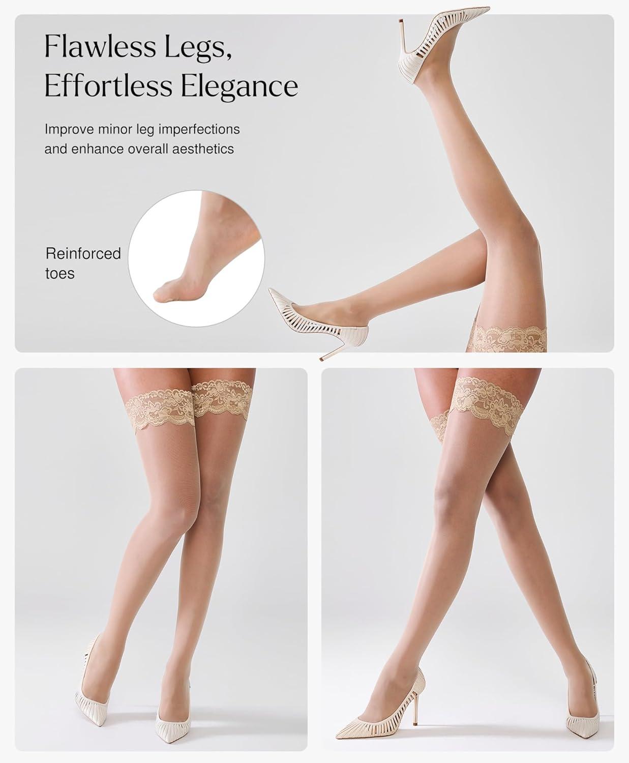 Popilush Thigh High Stockings for Women Silicone Lace Top Stay Up Silk Sheer Pantyhose(Nude)