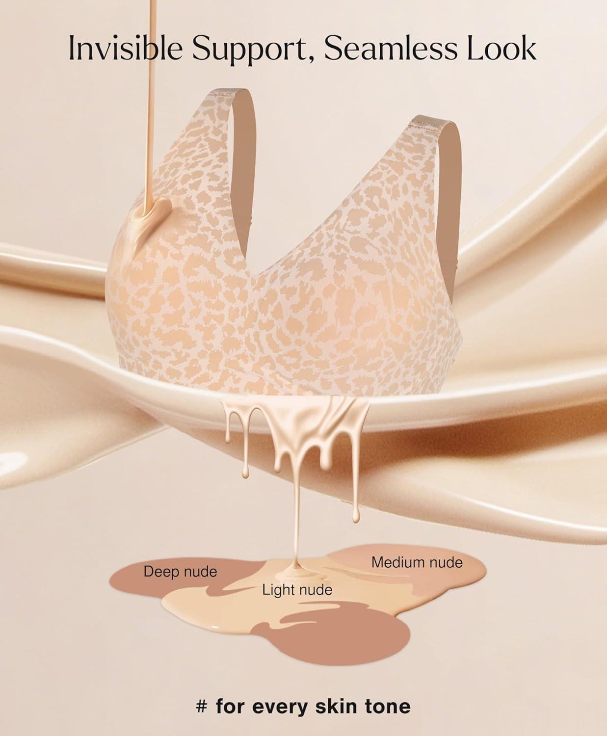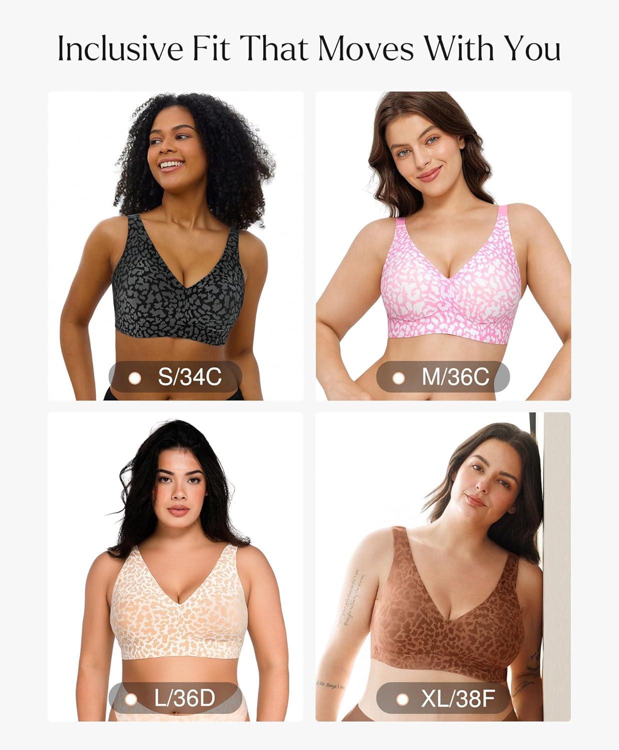 Popilush Wireless Bras Women Seamless No Underwire Push Up Bra Supportive Deep V Bralette Everyday Comfortable T-Shirt Bra(Leopard Skin)