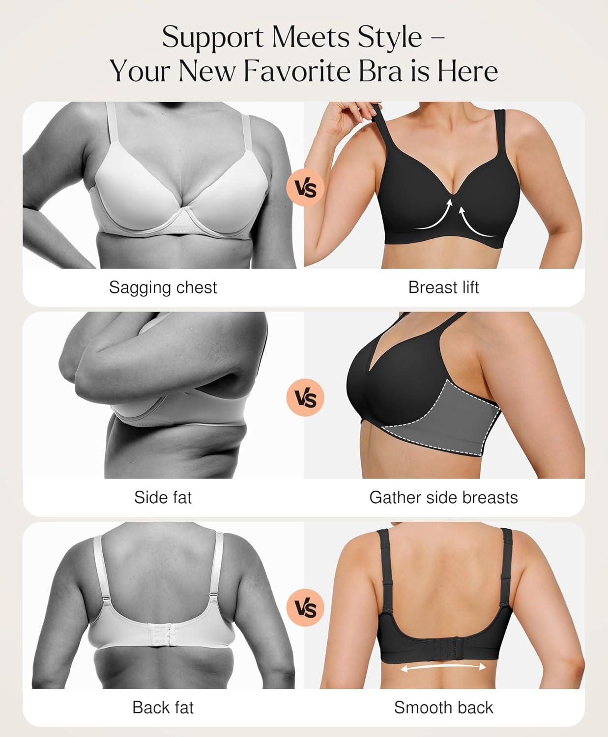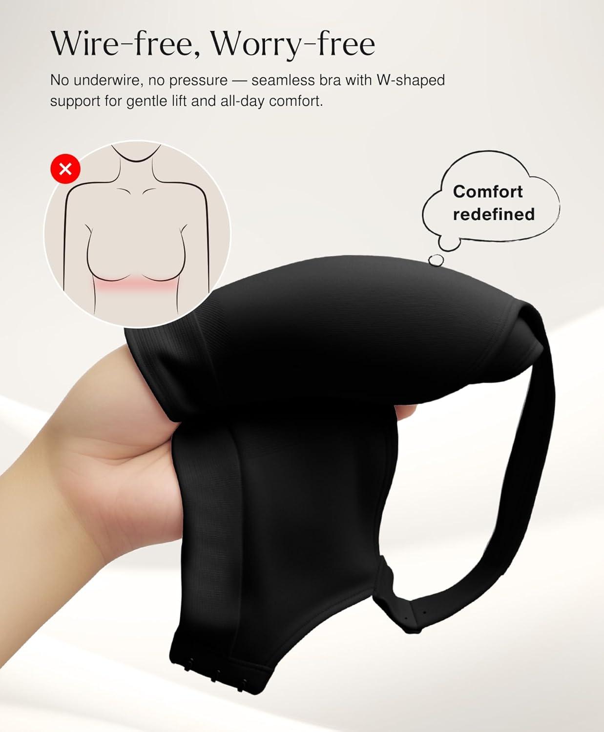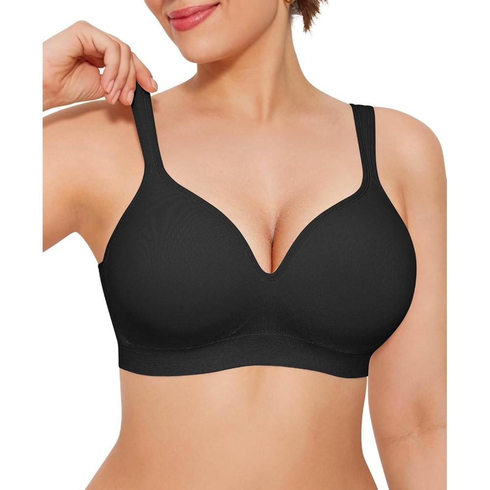 Popilush Wireless Push Up Bra – Seamless Bras for Women No Underwire Supportive Minimizer Bra Full Coverage Bralette(Black)
