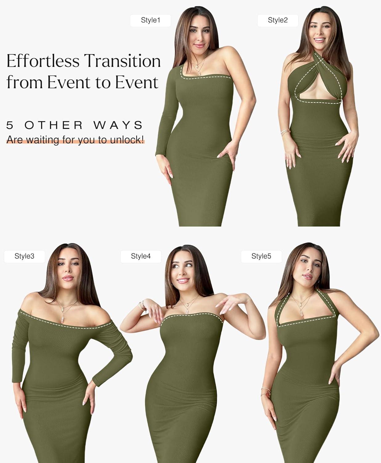 imagePopilush Womens Long Sleeve Maxi Dress Builtin Shapewear Bra Square Neck Fall Formal Wedding Guest Cocktail Bodycon DressesGreen
