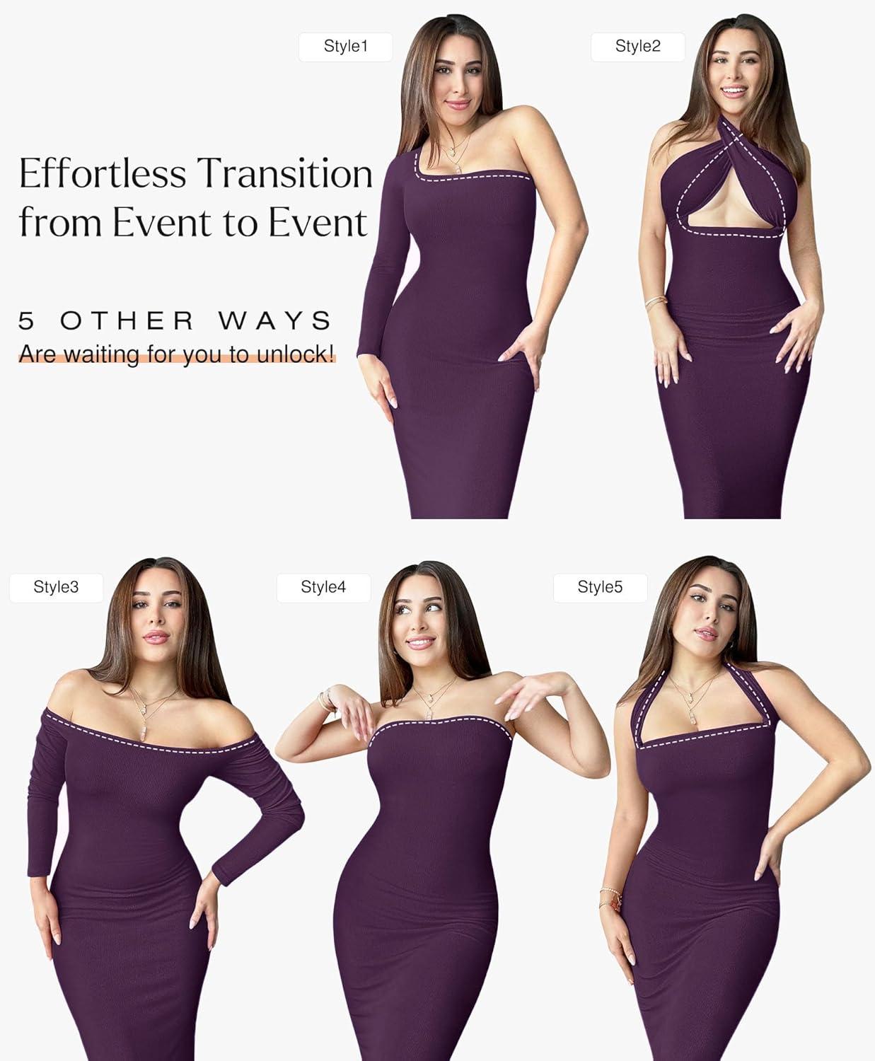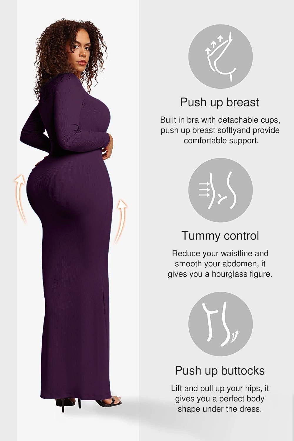 Get your hands on our newest Popilush Women’s Long Sleeve Maxi Dress Built-in Shapewear Bra Square Neck Fall Formal Wedding Guest Cocktail Bodycon Dresses(Purple) and enjoy a limited-time discount offer.