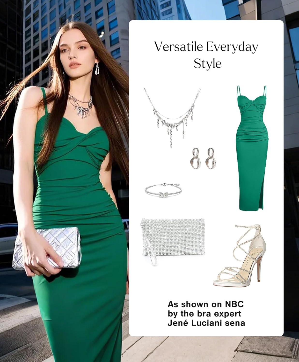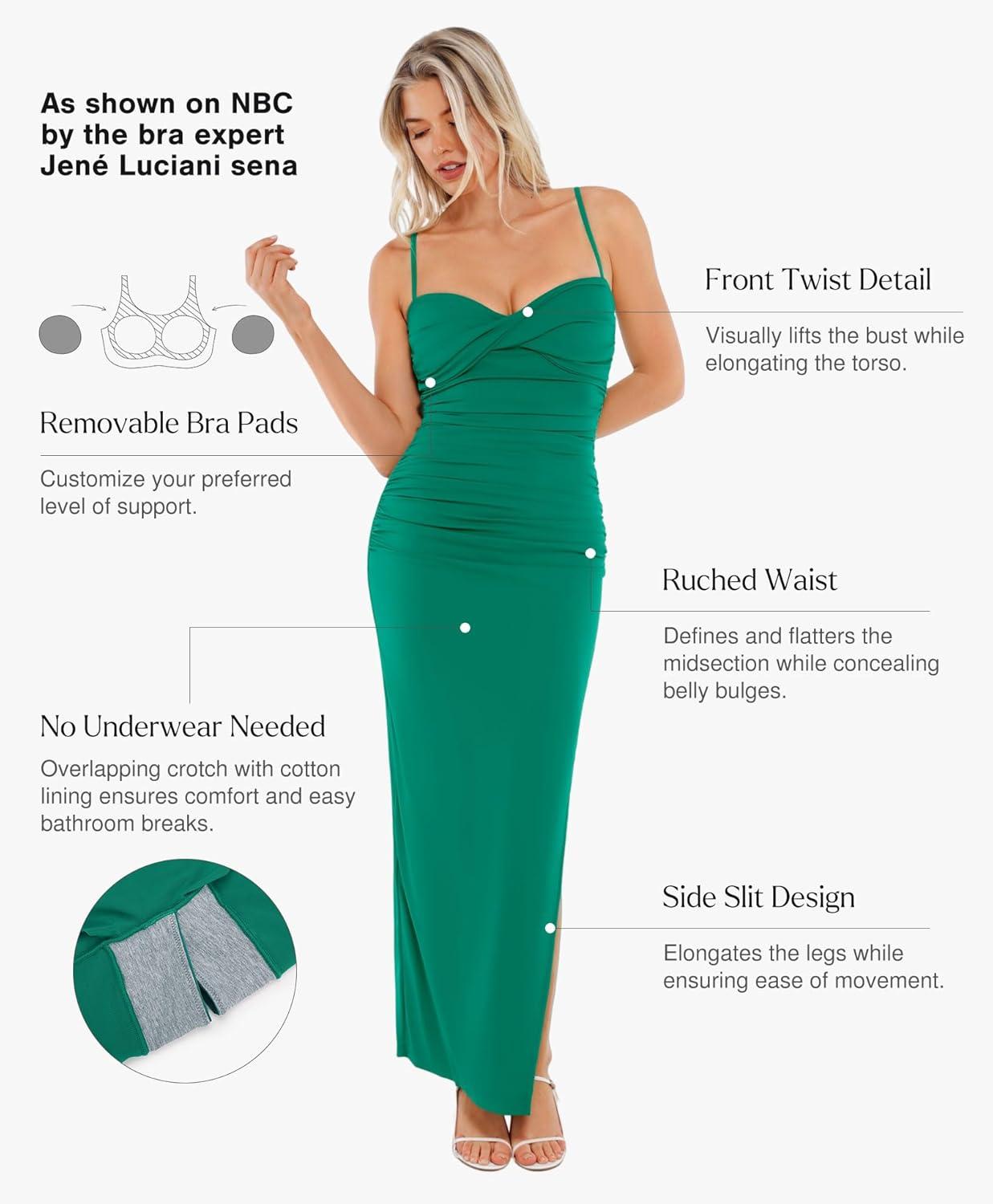 Popilush Women’s Shapewear Maxi Dress Corset Ruched Bodycon Elegant Formal Cocktail Evening Dresses(Green)