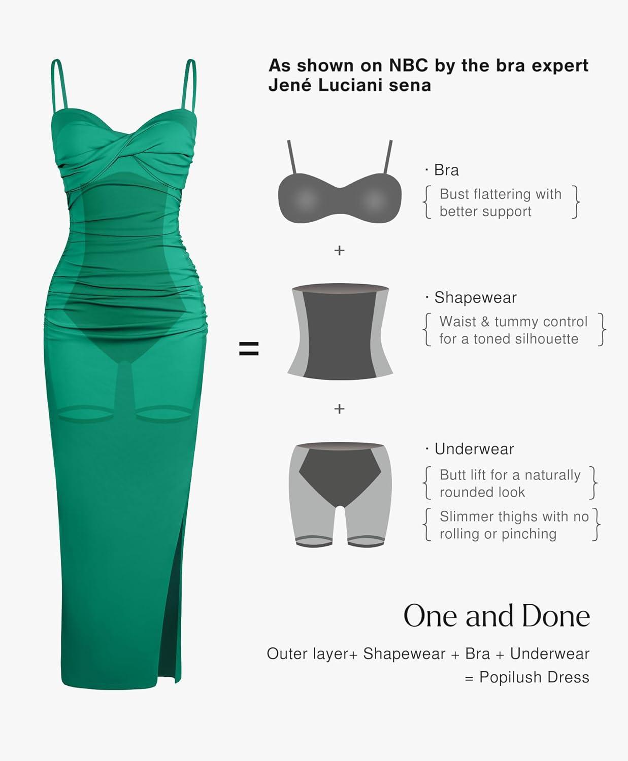 imagePopilush Womens Shapewear Maxi Dress Corset Ruched Bodycon Elegant Formal Cocktail Evening DressesGreen