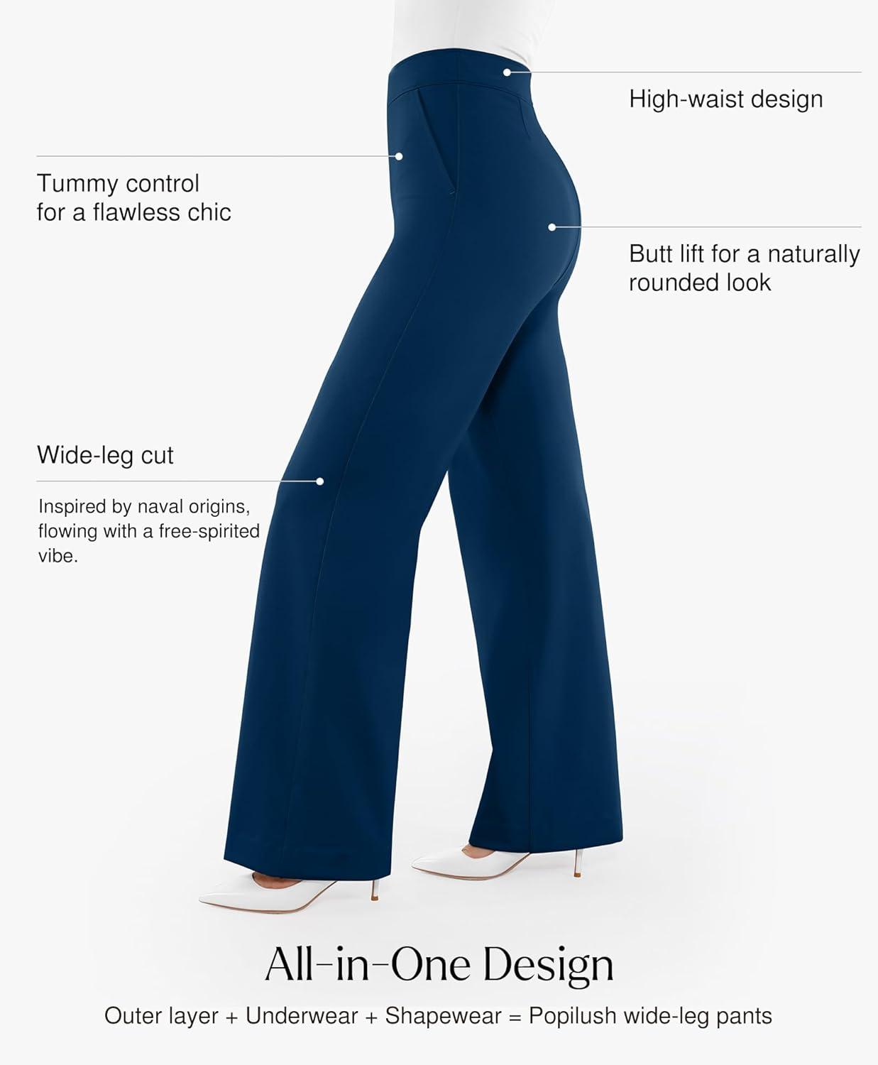 imagePopilush Work Pants for Women High Waisted Tummy Control Comfy Slimming Dress Pants with Pockets Business Casual OutfitsBlue