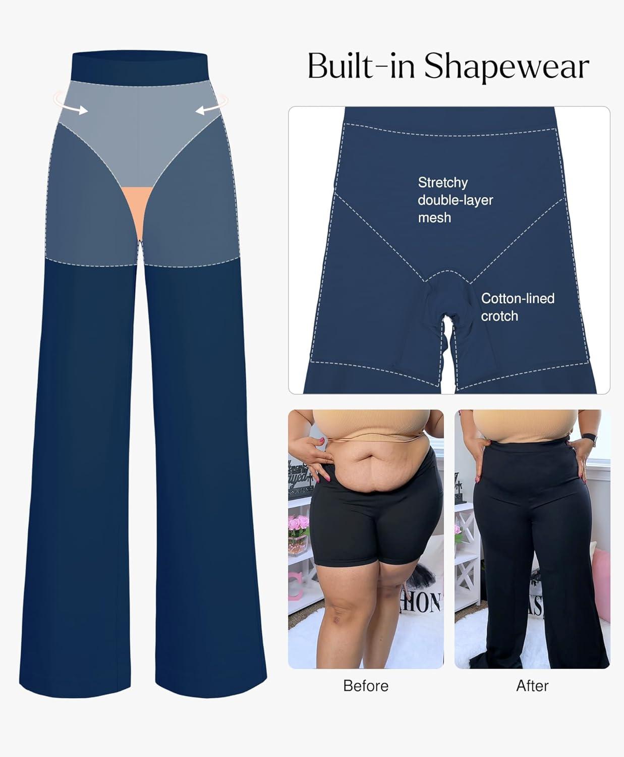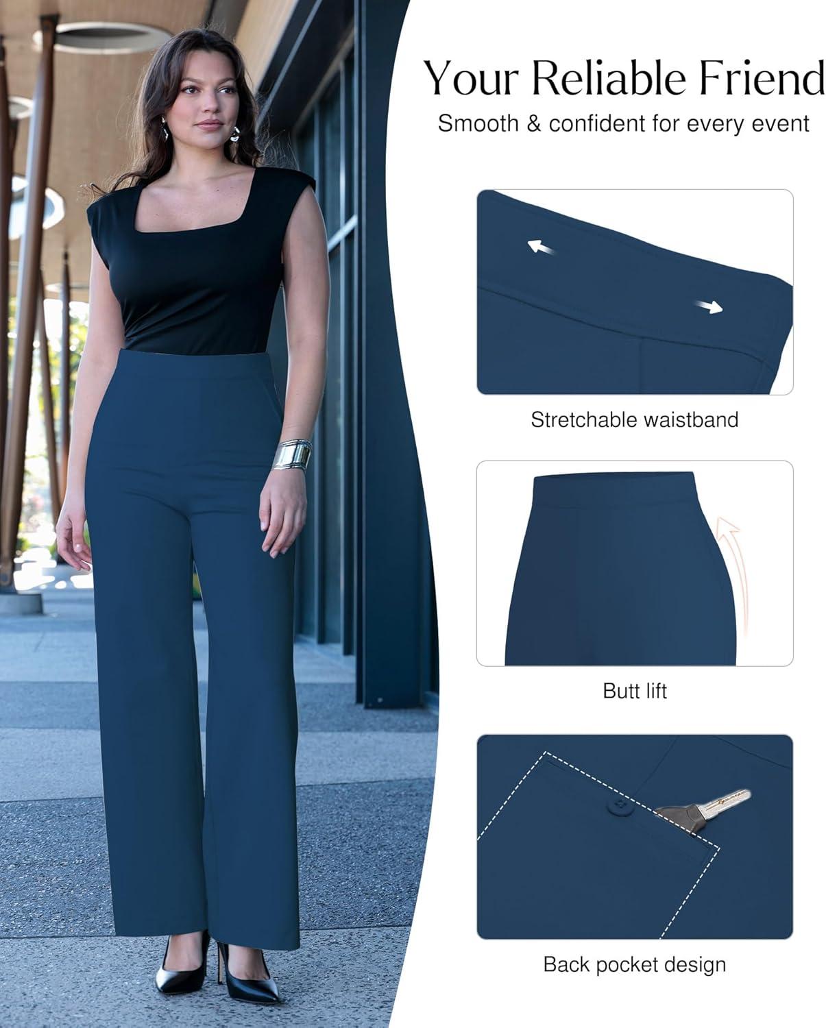 Popilush Work Pants for Women High Waisted Tummy Control Comfy Slimming Dress Pants with Pockets Business Casual Outfits(Blue)