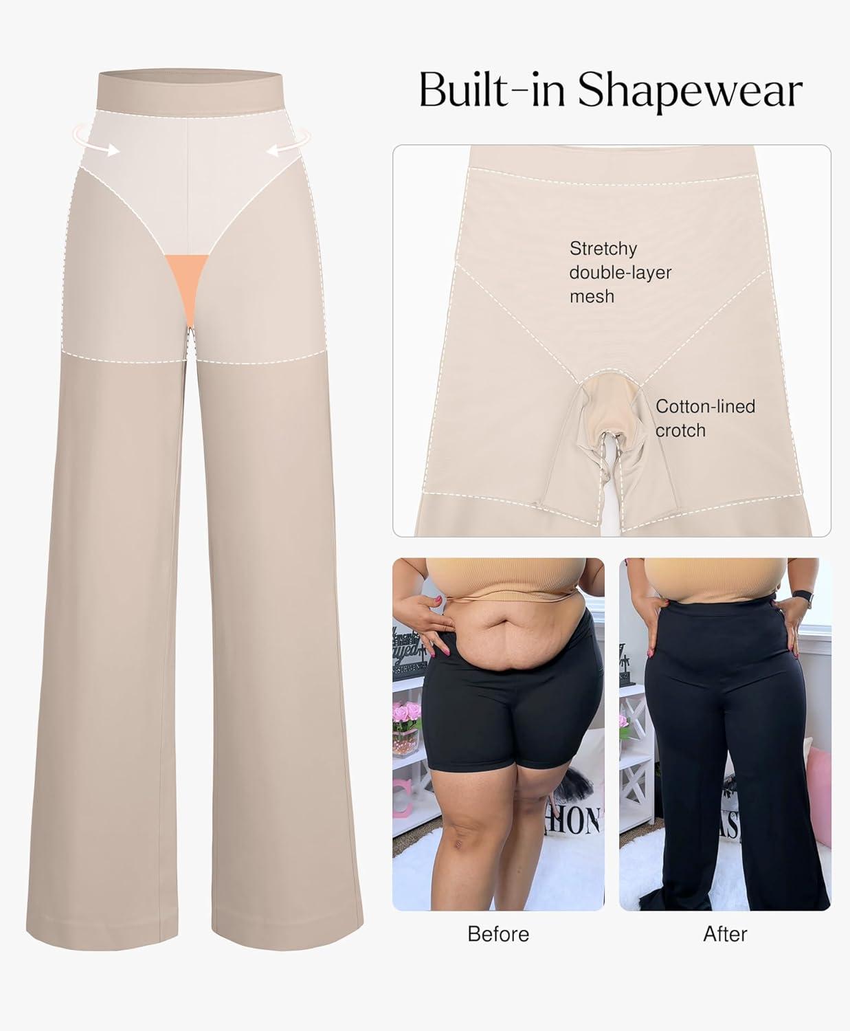 imagePopilush Work Pants for Women High Waisted Tummy Control Comfy Slimming Dress Pants with Pockets Business Casual OutfitsKhaki