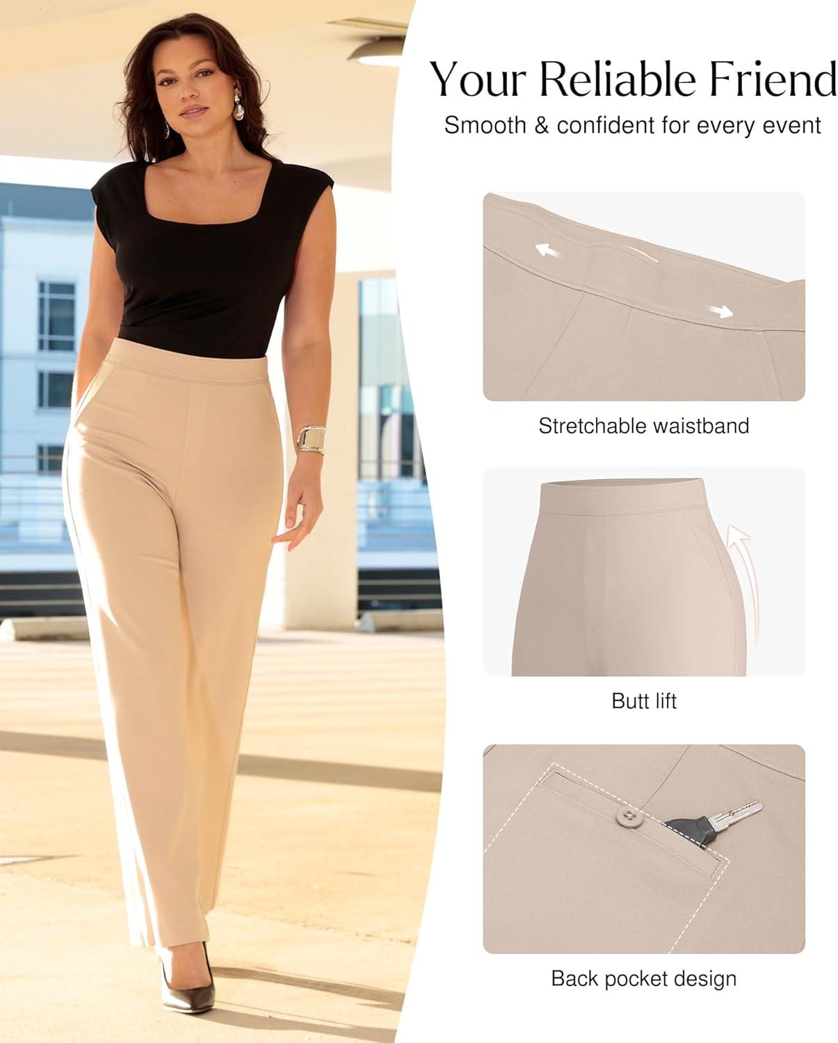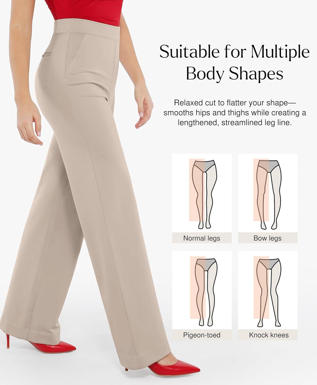 Popilush Work Pants for Women High Waisted Tummy Control Comfy Slimming Dress Pants with Pockets Business Casual Outfits(Khaki)