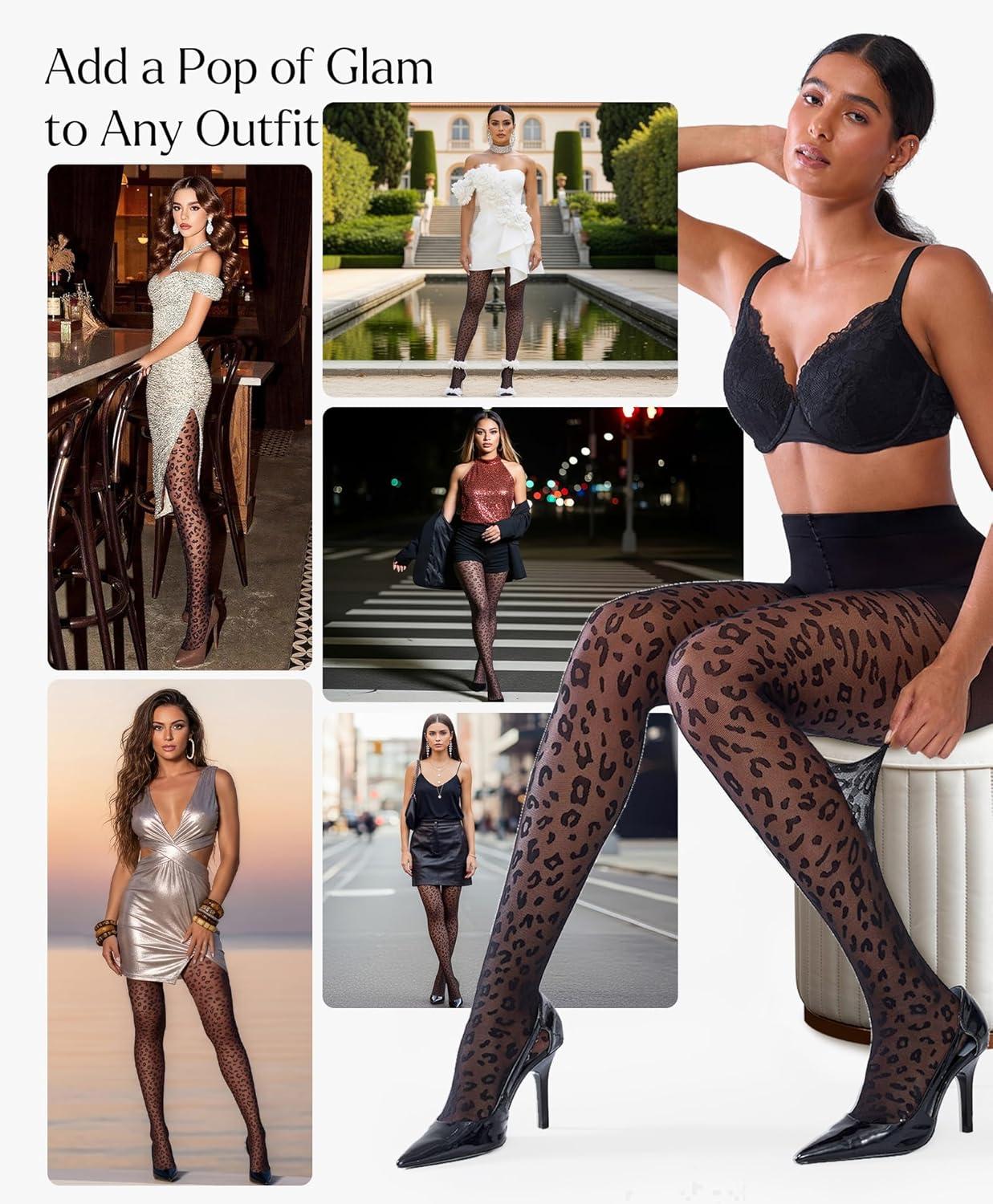 Sheer Tights for Women, Rip Resistant Pantyhose, 30D Control Top Pantyhose, Polka - Dot High Waist Compression Nylons(Black-leopard)