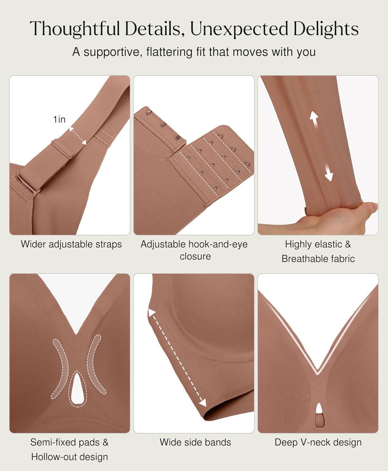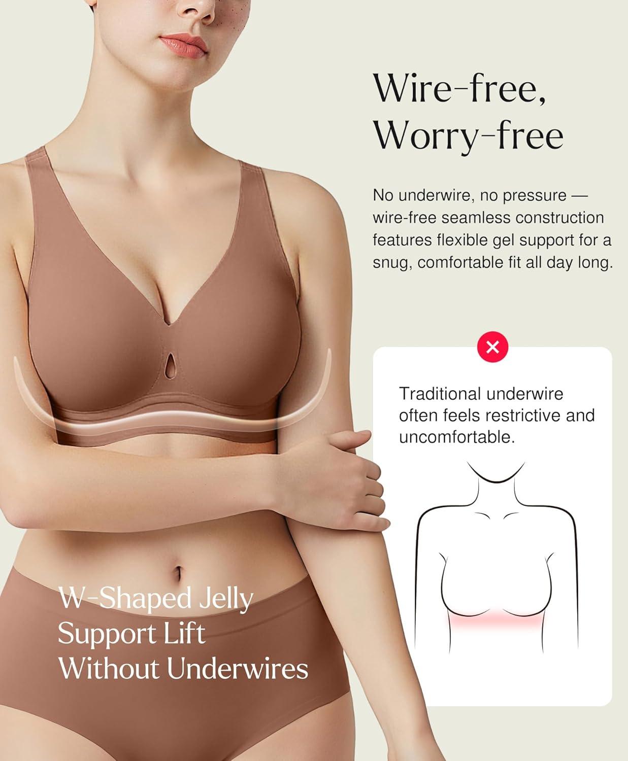 imageWireless Bras for Women No Underwire Seamless Push Up Full Coverage Bralettes Comfort Lift Support TShirt BraBrown