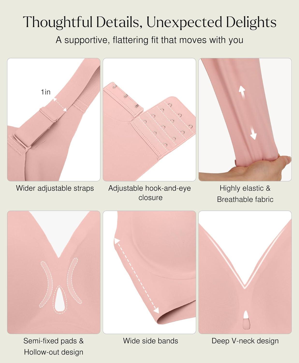 imageWireless Bras for Women No Underwire Seamless Push Up Full Coverage Bralettes Comfort Lift Support TShirt BraPink